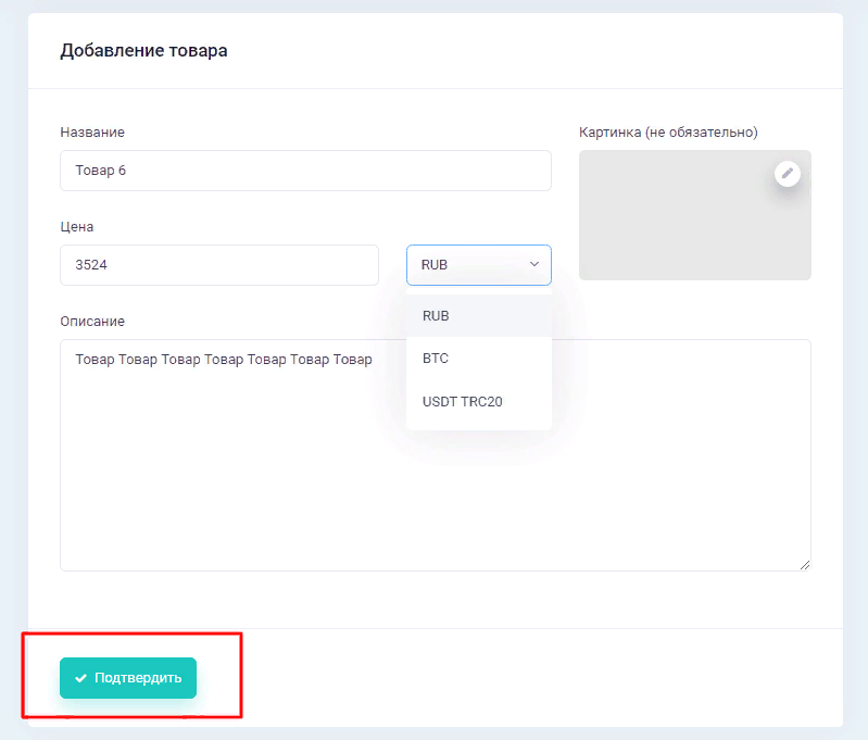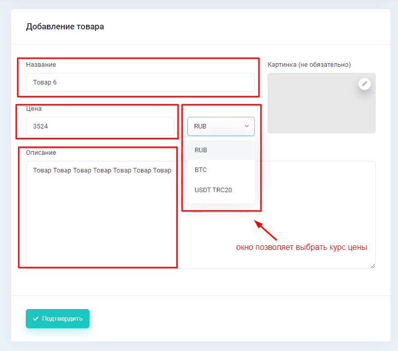 Затем, редактируем все необходимые поля и нажимаем кнопку "<mark style="color:blue;">Подтвердить</mark>"