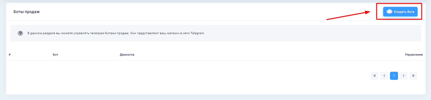 Чтобы добавить бота, необходимо нажать выделенную, синюю кнопку "<mark style="color:blue;">Создать бота</mark>"