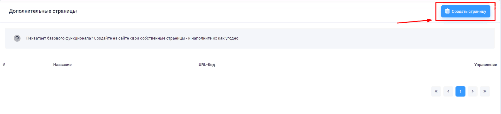 Чтобы, создать страницу, необходимо нажать "Создать страницу"